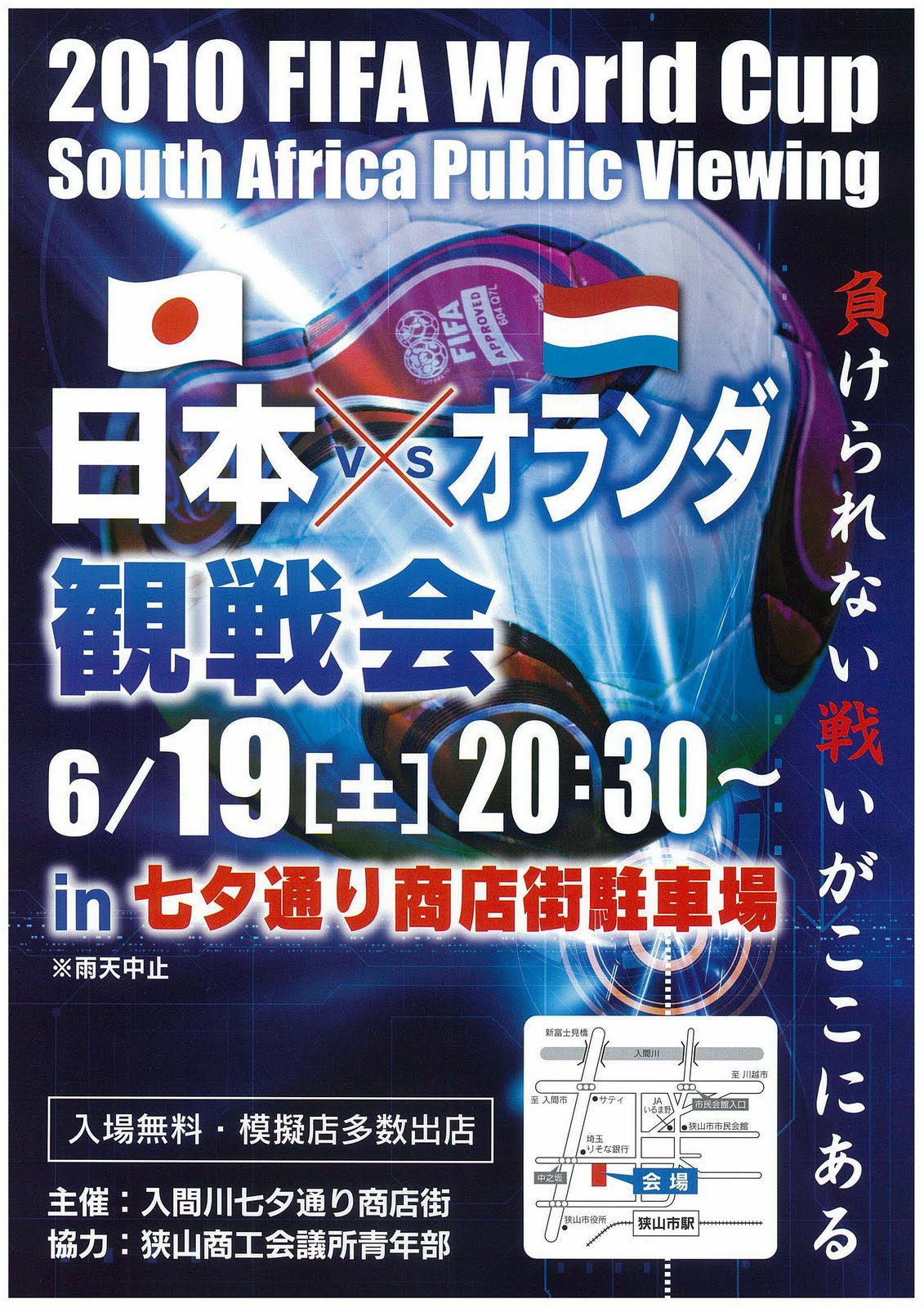 入間川七夕通り商店街では、来たる19日対オランダ戦を大勢の方と日本代表を応援しようと七夕通り商店街駐車場でパブリックビューイングを開催するそうです。